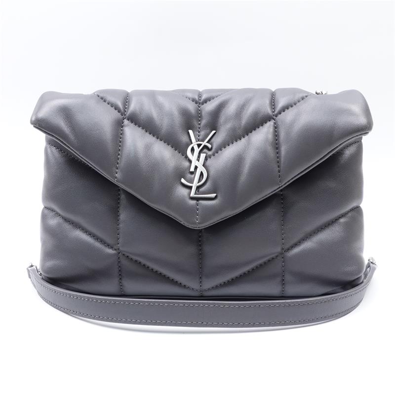 This is an authentic Saint Laurent Puffer Toy Grey Lambskin With Silver Hardware Cross Body Bag. Overall in great condition with minor sign of wear.
