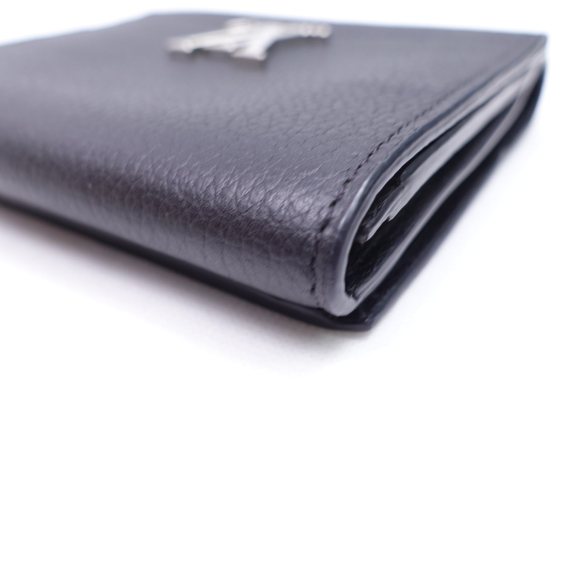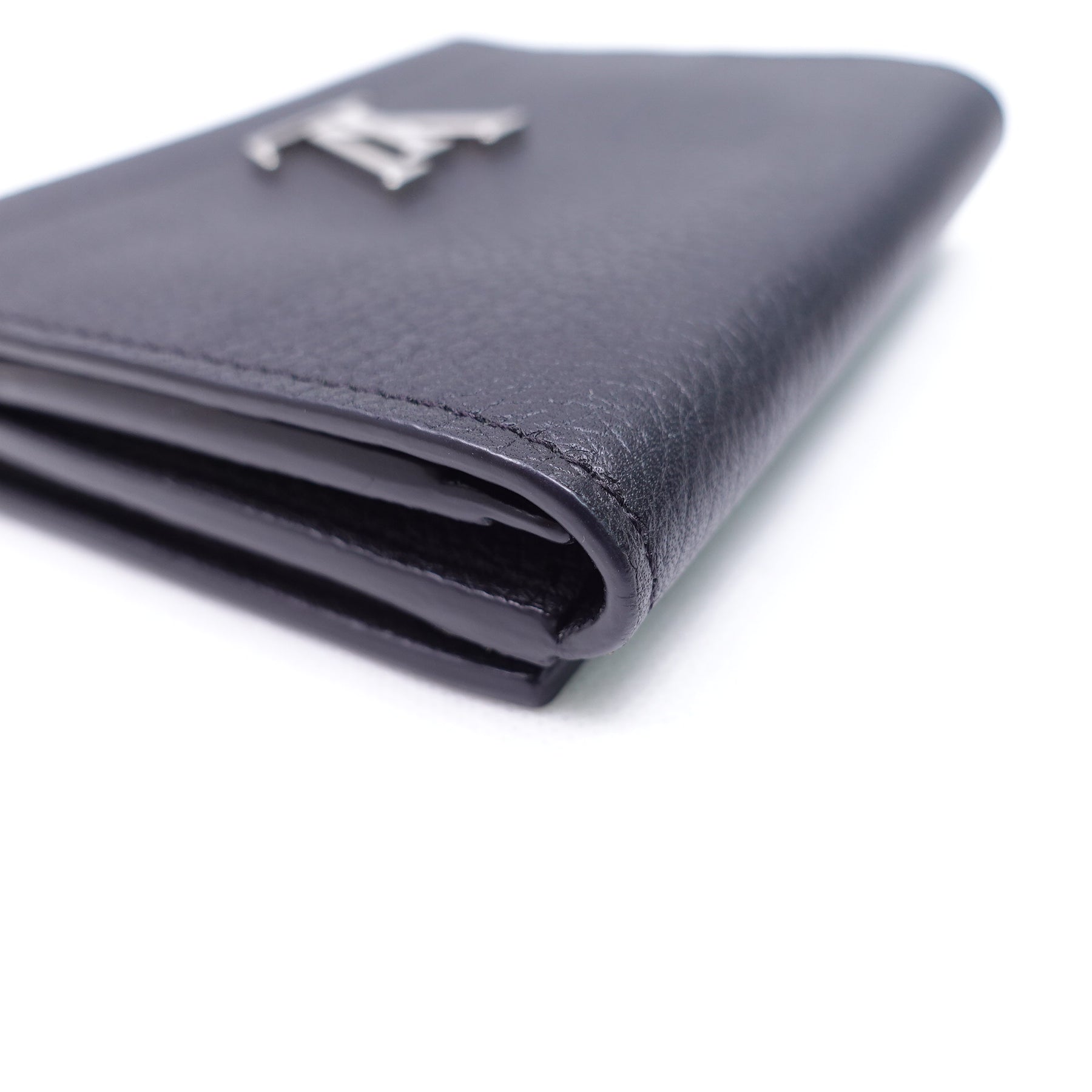 Pre-Owned Louis Vuitton Capucines Black Calfskin Short Wallet