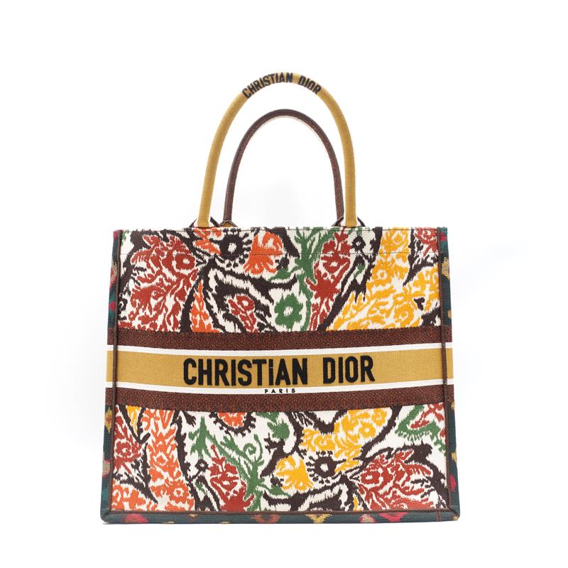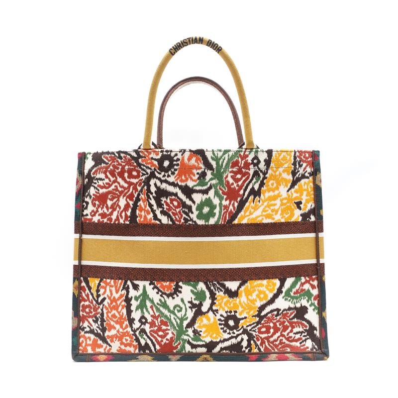 Dior Book Tote Multicolor Paisley Embroidered Canvas Large Handbag-TS