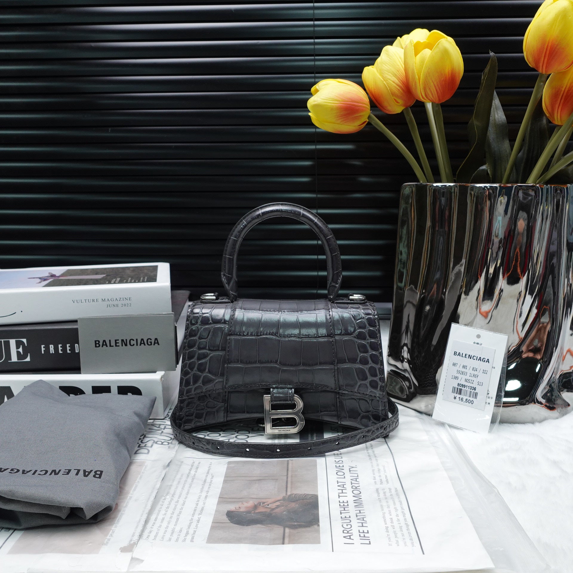 Pre-owned Balenciaga Hourglass Grey Calfskin Cross Body Bag