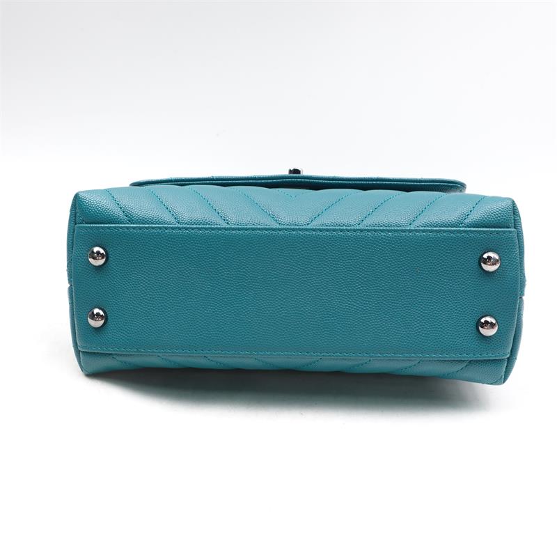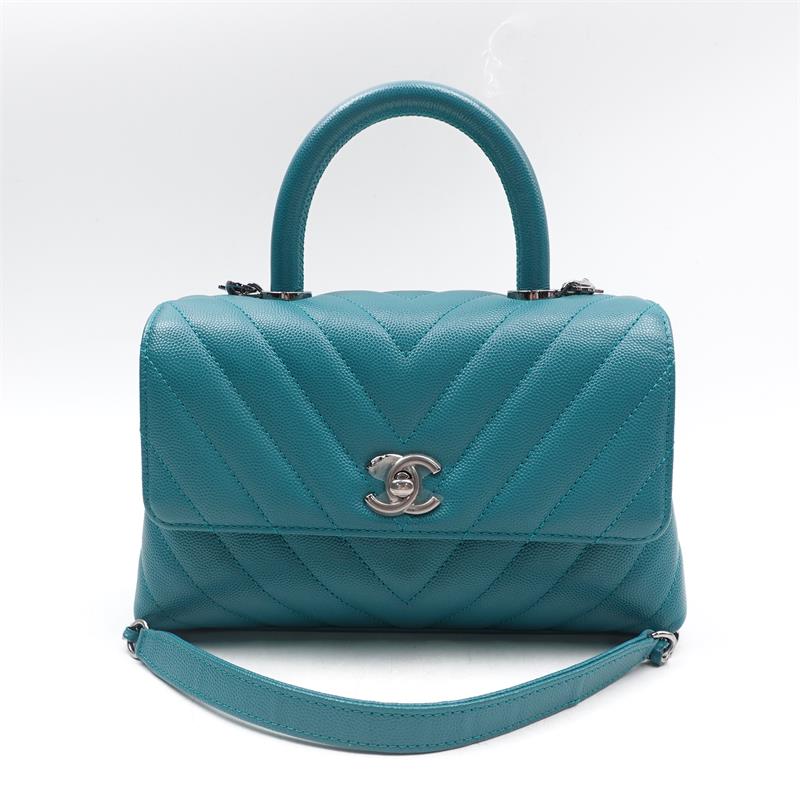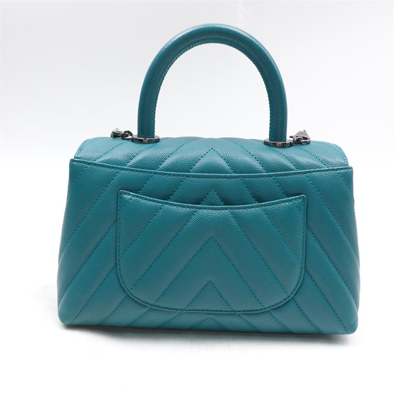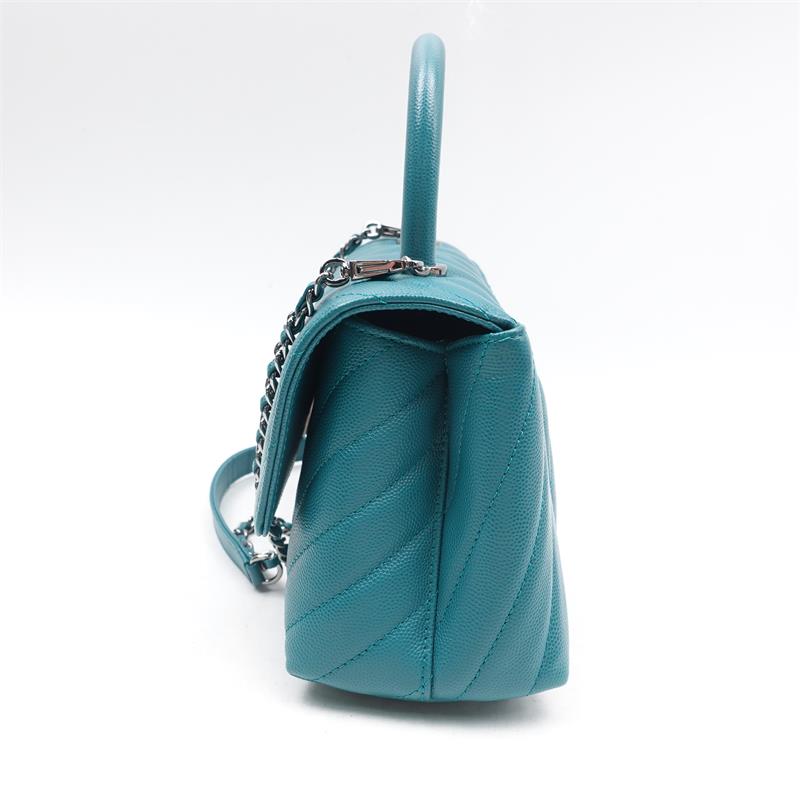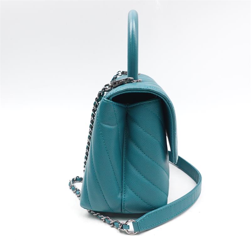 Pre-owned Chanel Chervon Coco Handle Teal Caviar Satchel