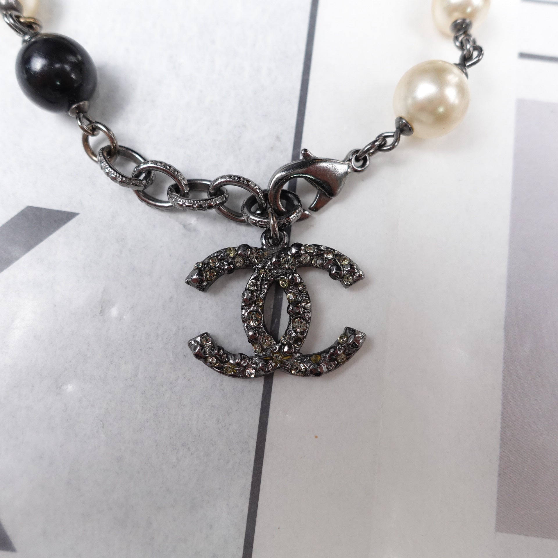 Pre-Owned Chanel Gold Tone CC Pearl&Diamond Black&White Bracelet
