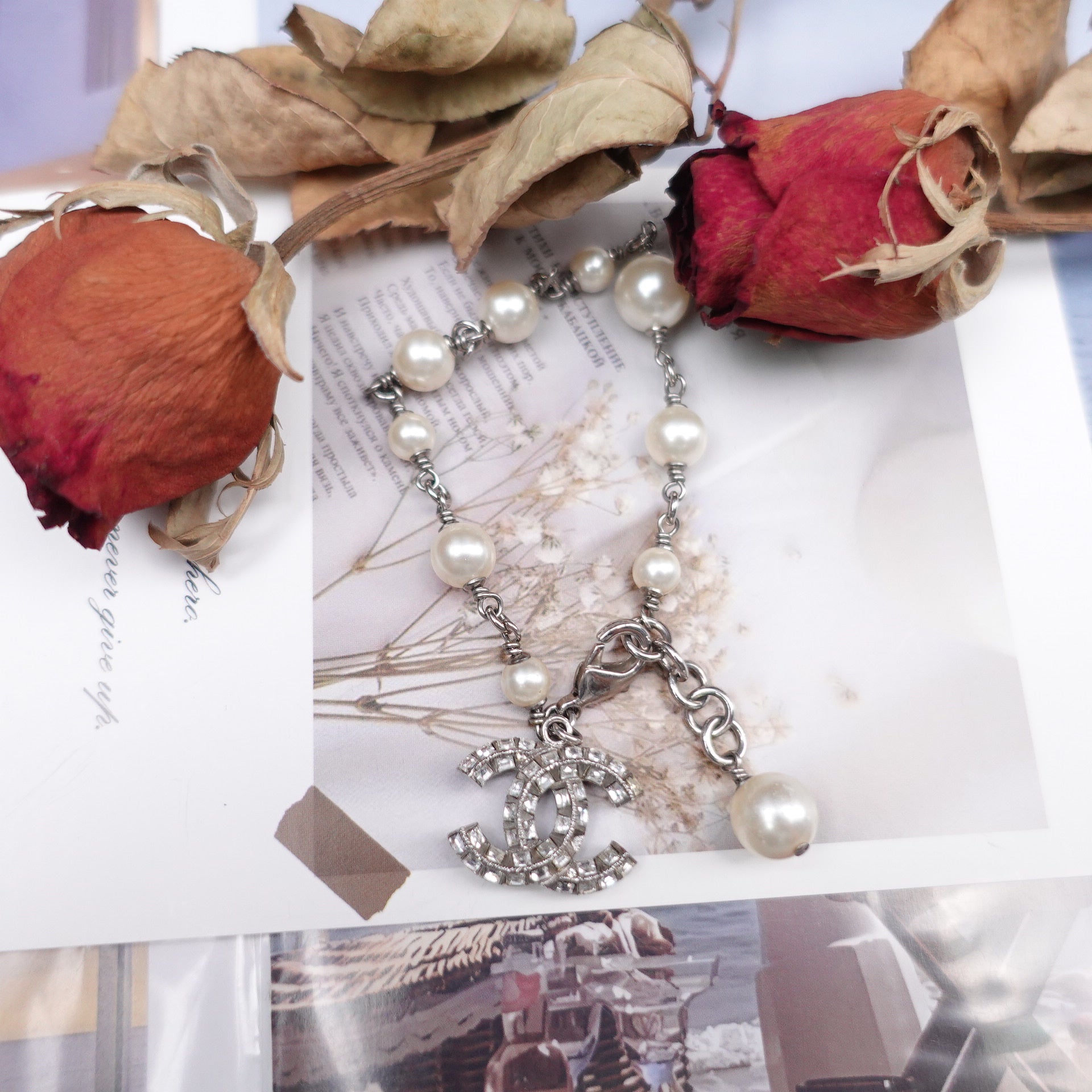 Pre-Owned Chanel Gold Tone Diamond&Pearl CC Silver Bracelet