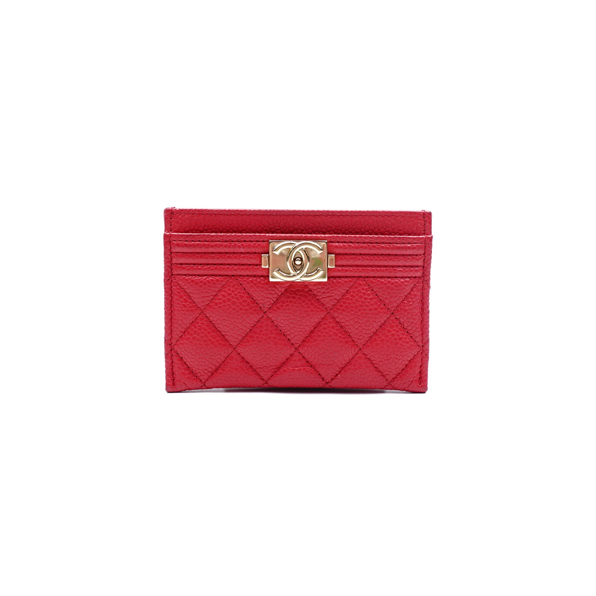 Pre-owned Chanel Le boy Red Calfskin Card Holder