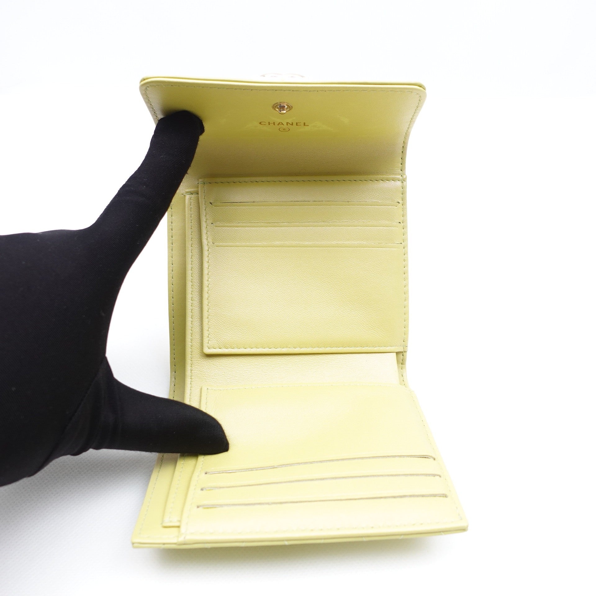 Pre-owned Chanel Leboy Yellow Patent Wallet