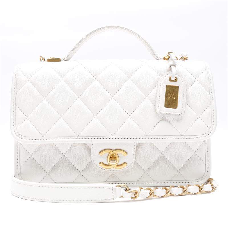 Pre-owned Chanel White Calfskin Shoulder Bag