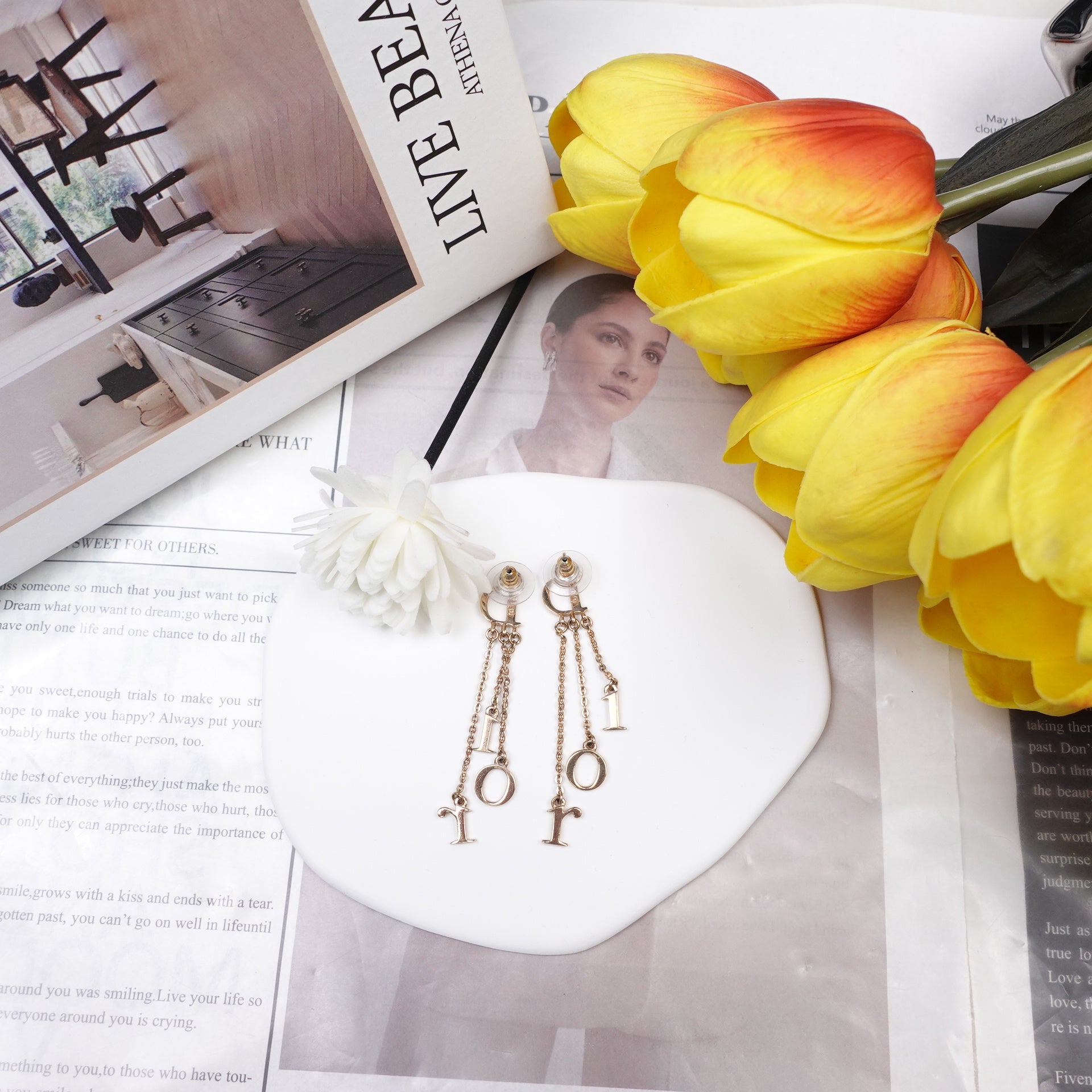 Pre-Owned Dior Crystal Gold Chain Dangle Earrings