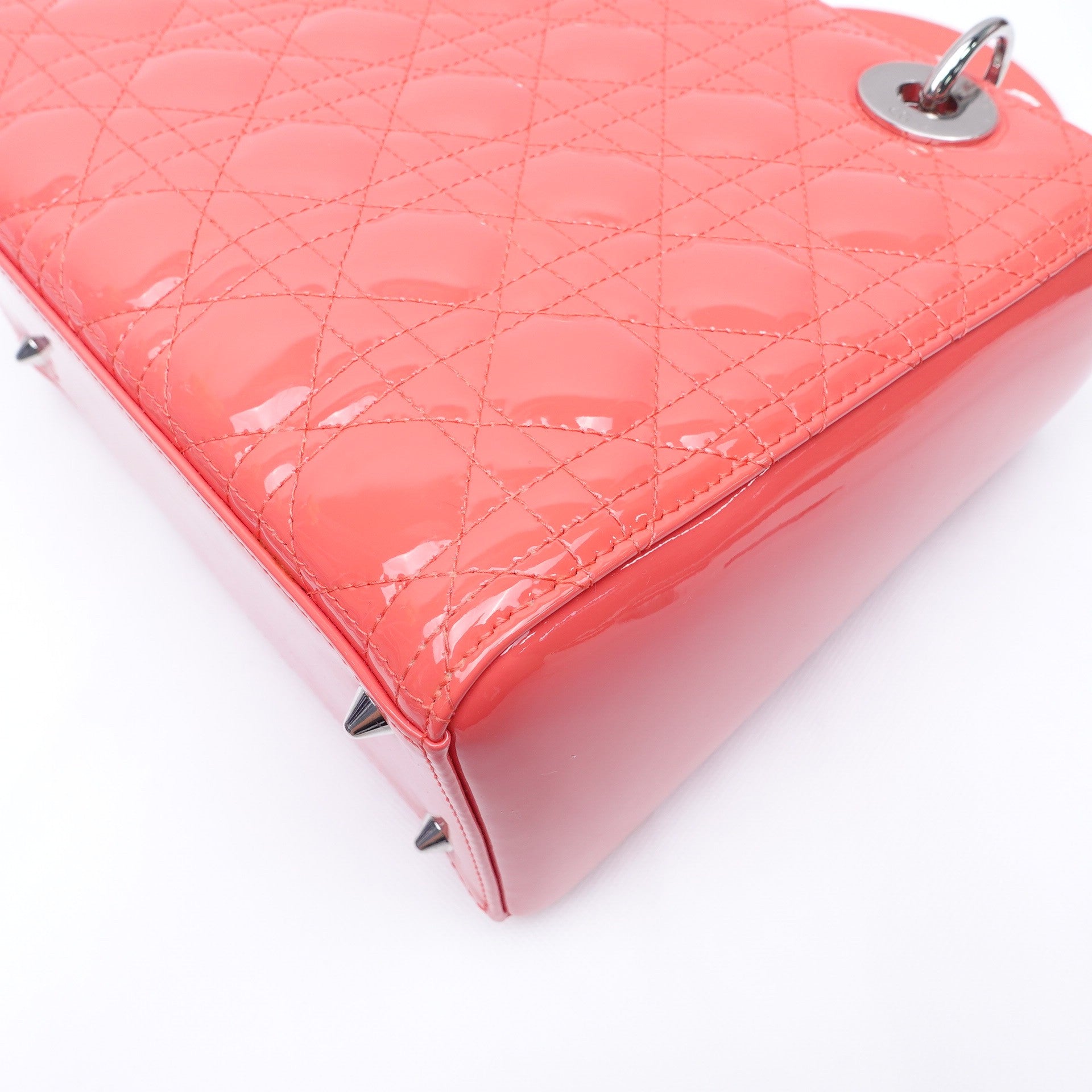 Pre-owned Dior Lady Dior Medium Pink Patent Shoulder Bag