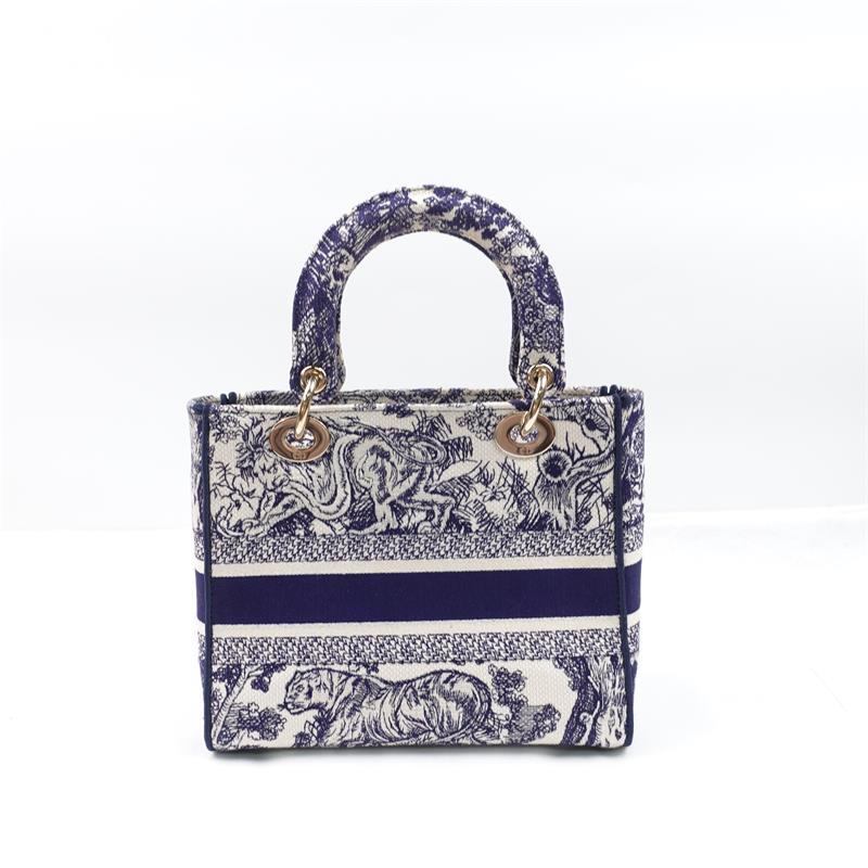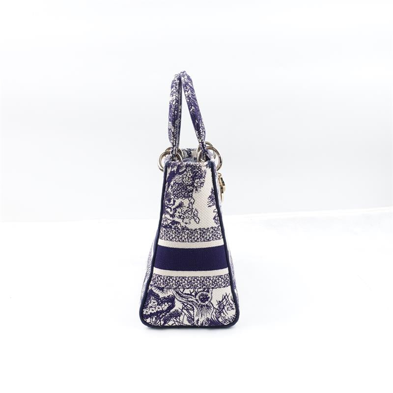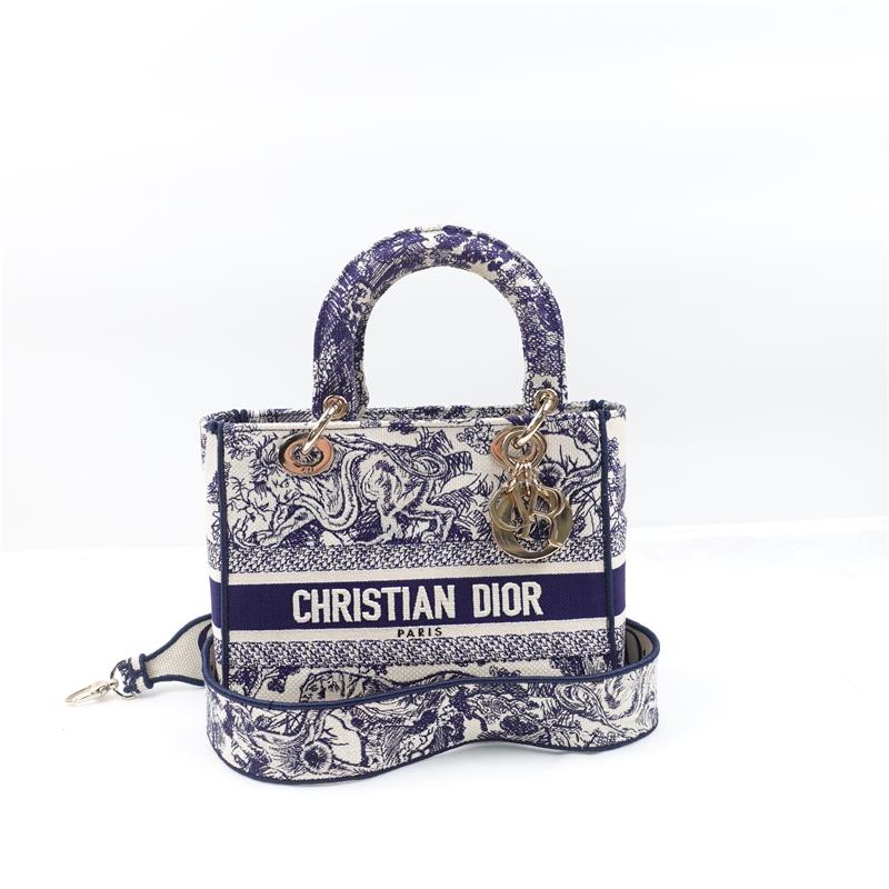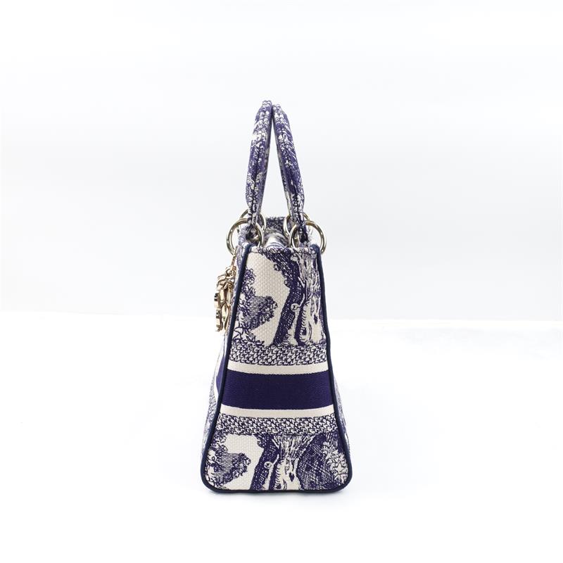 Pre-owned Dior Lady White & Blue Canvas Shoulder Bag