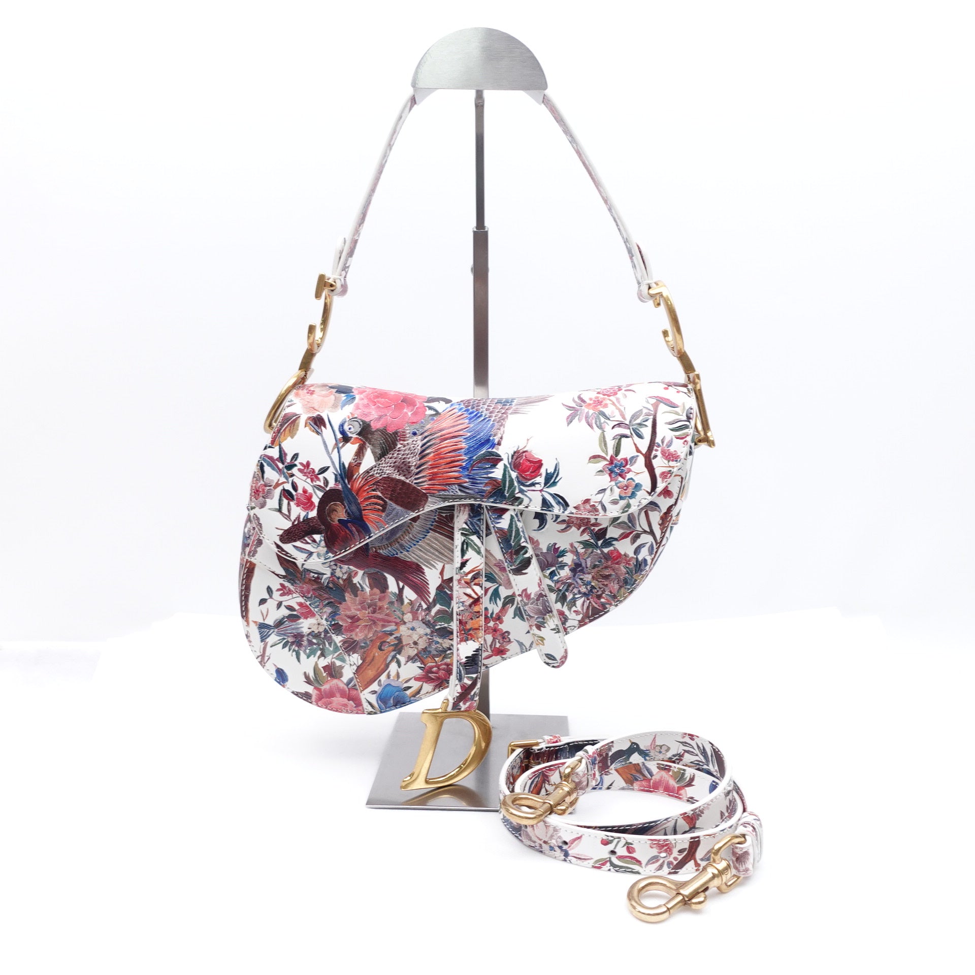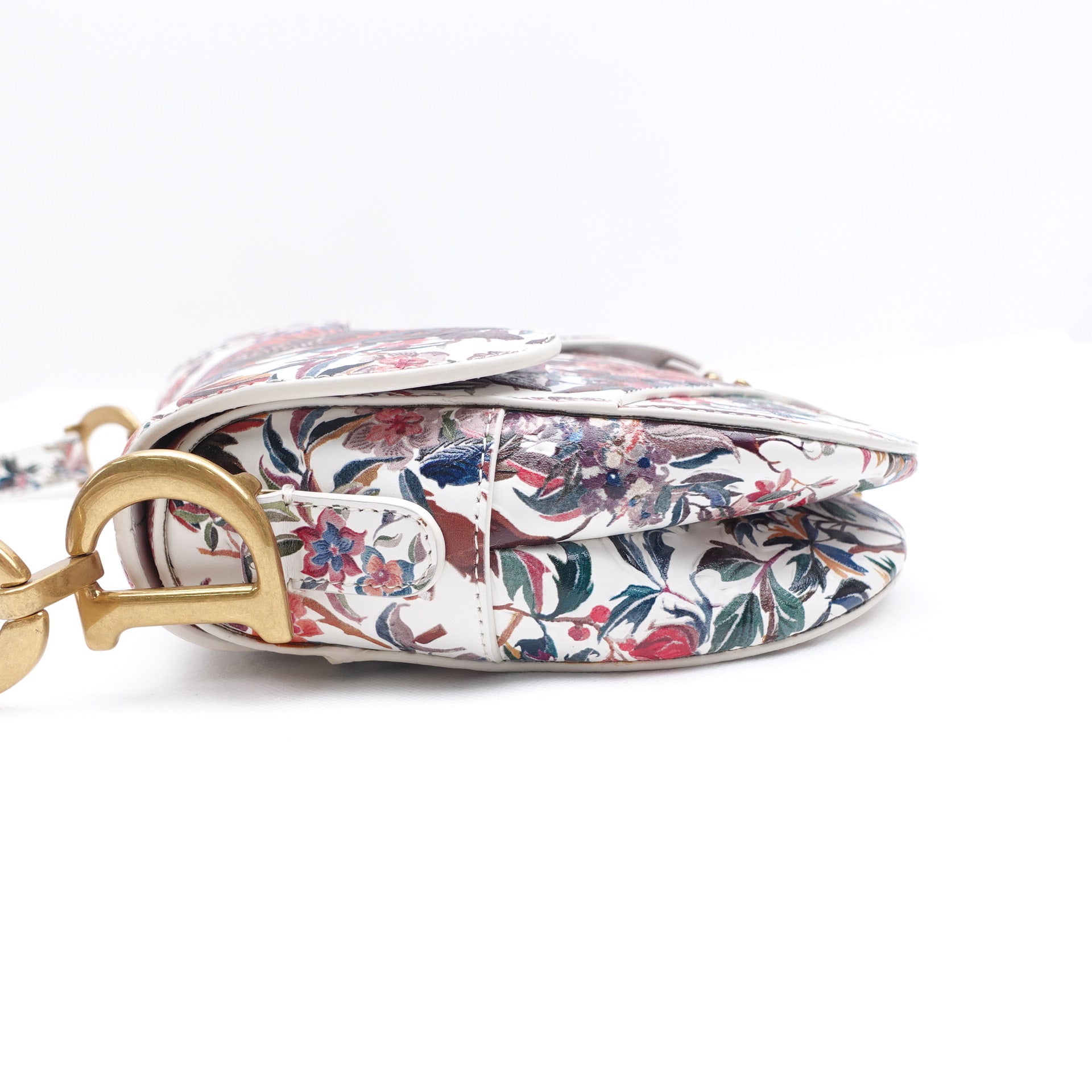 Pre-owned Dior Saddle Floral White Calfskin Shoulder Bag