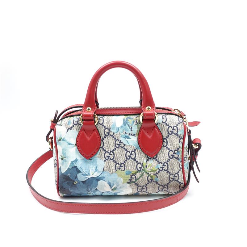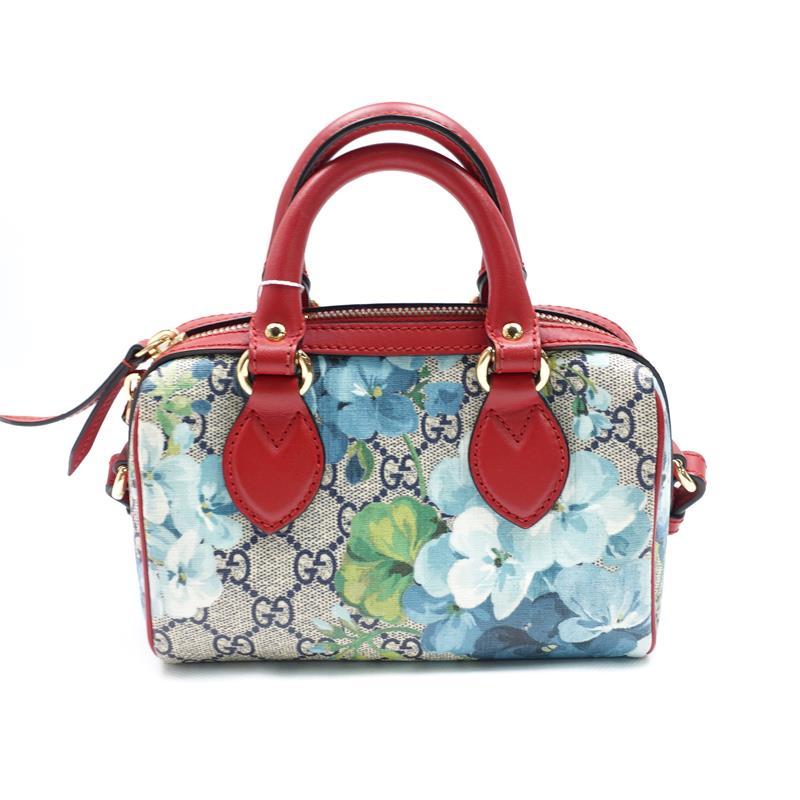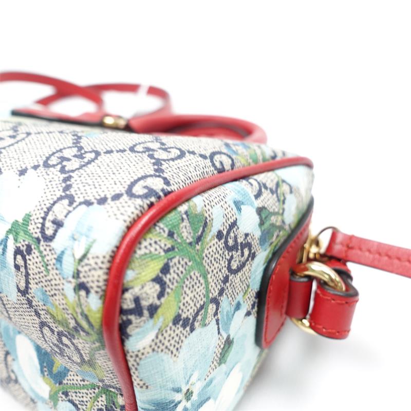 Pre-owned Gucci Boston Blooms Blue Coated Canvas Crossbody Bag