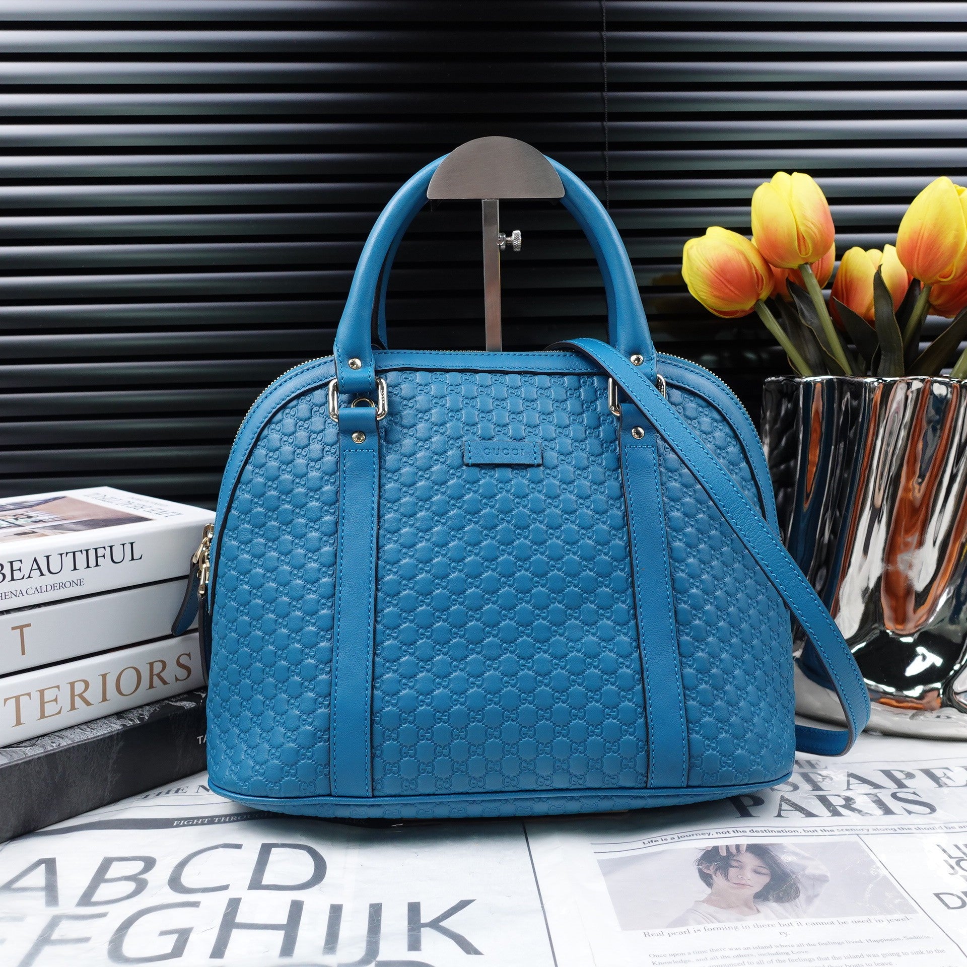 Pre-owned Gucci Microguccissima Dome Medium Blue Calfskin Shoulder Bag