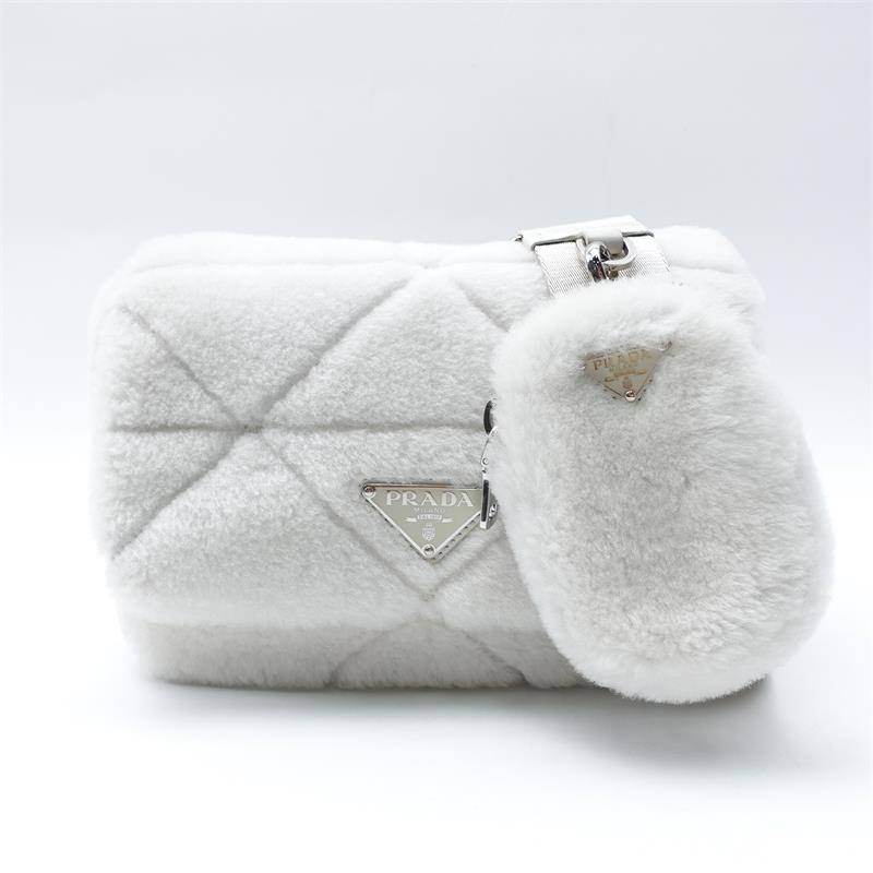 Pre-owned Prada system White Shearling Sheep Fur Shoulder Bag